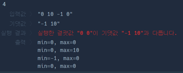 예를들어 s가 "1 2 3 4"라면 "1 4"를 리턴하고, "-1 -2 -3 -4"라면 "-4 -1"을 리턴하면 됩니다.