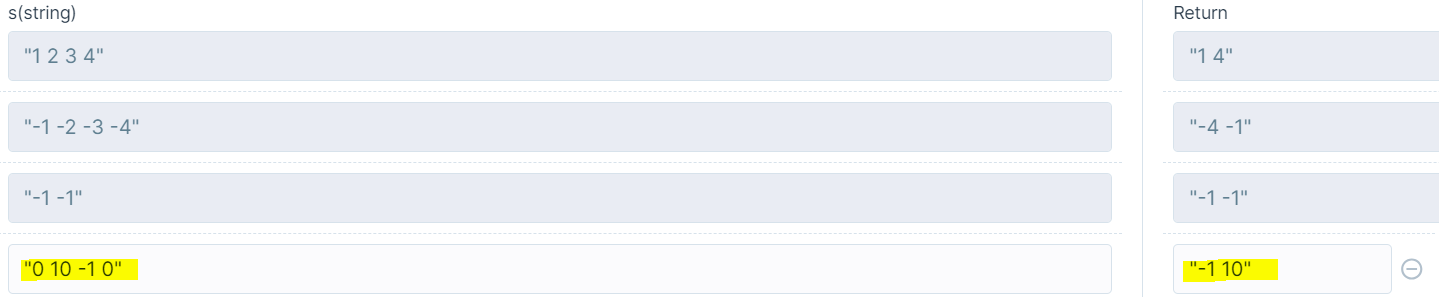 | "-1 -2 -3 -4" | "-4 -1" |